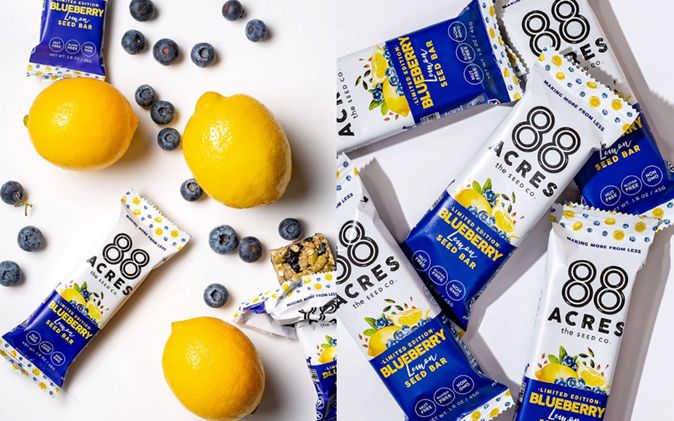 坚果、果干、籽实健康食材等在营养棒类别的应用也显著增长。其中,扁桃仁已被证明可以与其他植物和动物来源的蛋白质相容,补充更加完整的氨基酸谱产品。根据Innova的统计数据,26%北美上市的营养棒添加了扁桃仁成分。BlueDiamond生产的扁桃仁蛋白粉是一种新型的配料,可以作为填充物或粘合剂加入营养棒中。除了扁桃仁蛋白粉,营养棒还可以添加整粒杏仁和杏仁碎增加口感。果仁和蓝莓也越来越受欢迎。88 Acres是一家专注于校园健康零食的品牌,它最近推出了一系列新的蓝莓柠檬零食棒,含有丰富的南瓜籽、葵花籽、亚麻籽等成分,已经被认证为不含八大过敏原、非转基因。