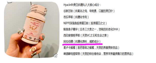 那些添加了L-阿拉伯糖的抗糖食品蔗糖的甜味给人以愉悦的感觉,而且它的甜味纯正、稳定、回味良好。人们非常喜爱蔗糖的持久甜味,对它特有味感的依赖性难以撼动。但过多食用精制糖类会造成能量过剩,这是引起肥胖的一个重要原因。 作为一种双糖,蔗糖进入人体后只有通过蔗糖酶作用,分解成一分子葡萄糖和一分子果糖(两者均为单糖)后才能被人体吸收和利用。 图1 蔗糖被分解为葡萄糖和果糖的过程 抗糖化这个词近些年刚刚兴起,主要是在日本,自从POLA推出抗糖化口服类产品后,越来越多的抗糖化护肤品走进了我们的视线。在很多抗糖化产品中都添加了新食品原料,L-阿拉伯糖,特做此汇总。 L-阿拉伯糖,一种新型的甜味剂,广泛存在于水果和粗粮的皮壳中,因可以抑制人体肠道内蔗糖酶的活性,从而具有了抑制蔗糖吸收的功效,在日本厚生省将L-阿拉伯糖列入“调节血糖的专用特殊保健食品添加剂”;美国医疗协会将L-阿拉伯糖列入“抗肥胖的营养补充剂或非处方药”;之后,我国卫生部于2008年正式批准L-阿拉伯糖为新资源食品,确认了其在功能糖领域的重要地位。--摘自:百度百科 ① 安利抗糖饮料 主要成分:甘菊,黑加仑,L-阿拉伯糖 ② 日本抗糖大师 主要成分:L-阿拉伯糖,白芸豆提取物 ③ 日本TNA抗糖饮 主要成分:L-阿拉伯糖,胶原蛋白肽 ④ 日本Mova抗糖饮 主要配料:L-阿拉伯糖,鱼胶原蛋白肽 ⑤Hyacinth美白抗糖丸 ⑥ 薄荷味阻糖片 主要成分:L-阿拉伯糖,多聚糖等 ⑦ 控糖胶囊 主要成分:L-阿拉伯糖,吡啶甲酸铬 ⑧台湾ADKK美白抗衰口服液 主要成分:L-阿拉伯糖+绽放金针花萃取,协同成分玫瑰茄、马齿苋萃取 ⑨台湾闪淀抗甜 主要成分:白芸豆,藤黄果,L-阿拉伯糖 ⑩ 中国诫糖 主要成分:L-阿拉伯糖,白芸豆提取物 隔糖植物饮品 |